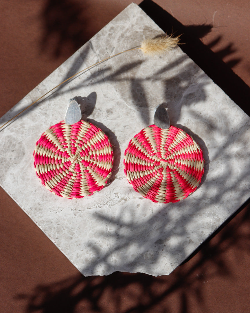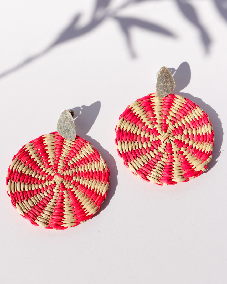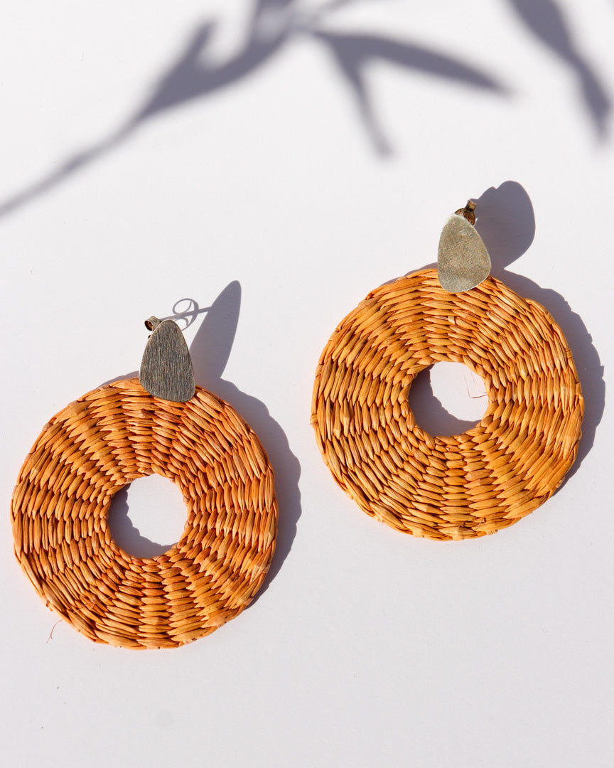 Casa Bonita presents the unique Iraca Palm Handwoven 'Luxe' Round Earrings, that are ethically and sustainably sourced from Colombian Artisan and Indigenous women-owned businesses.