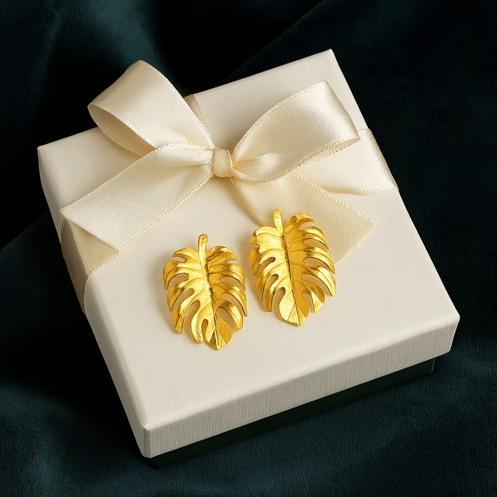 Luxe 24k Gold-Plated Bronze Monstera Earrings Ethically and Sustainably Sourced