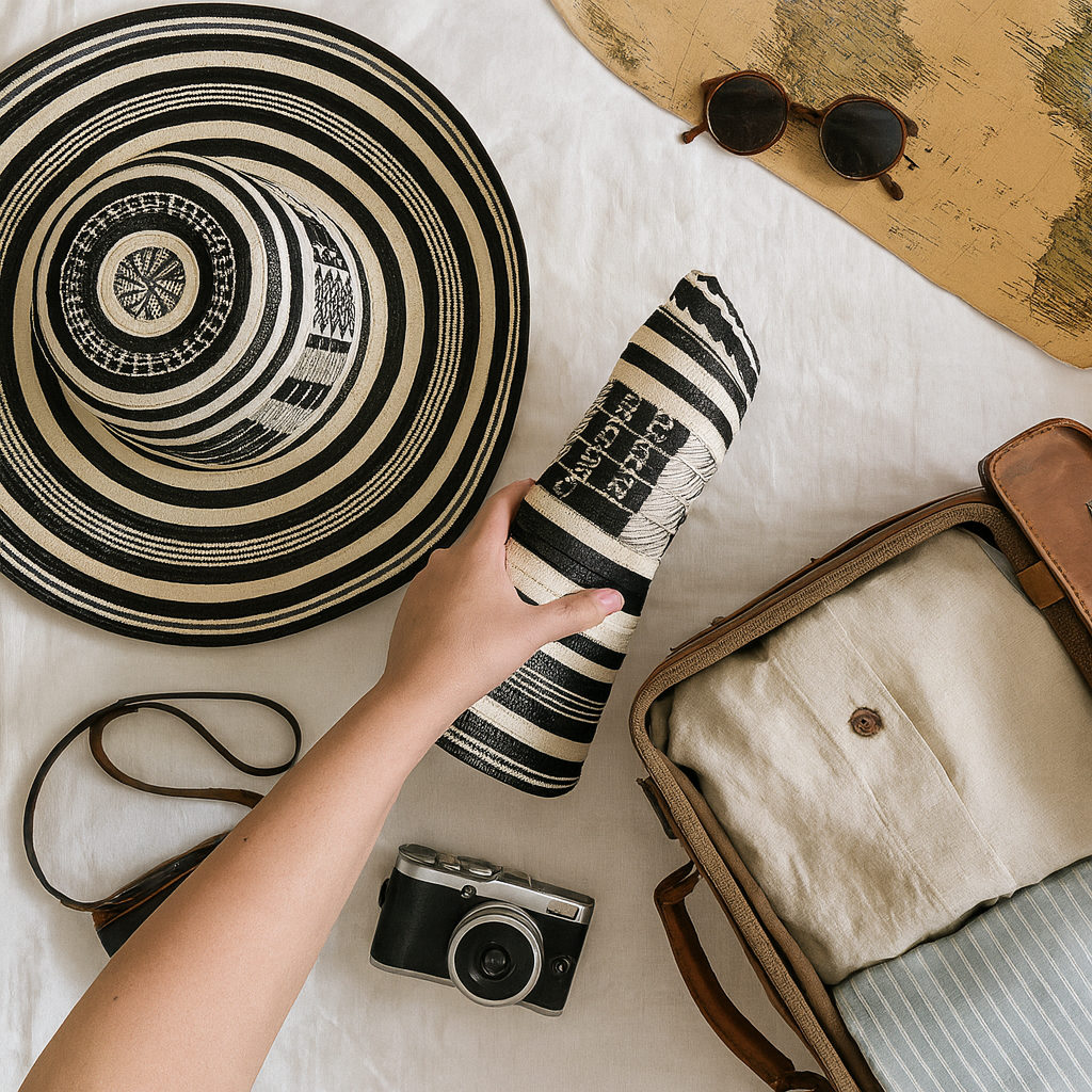 Your Sombrero Vueltiao is designed for effortless travel. Follow these simple steps to roll and protect it beautifully: